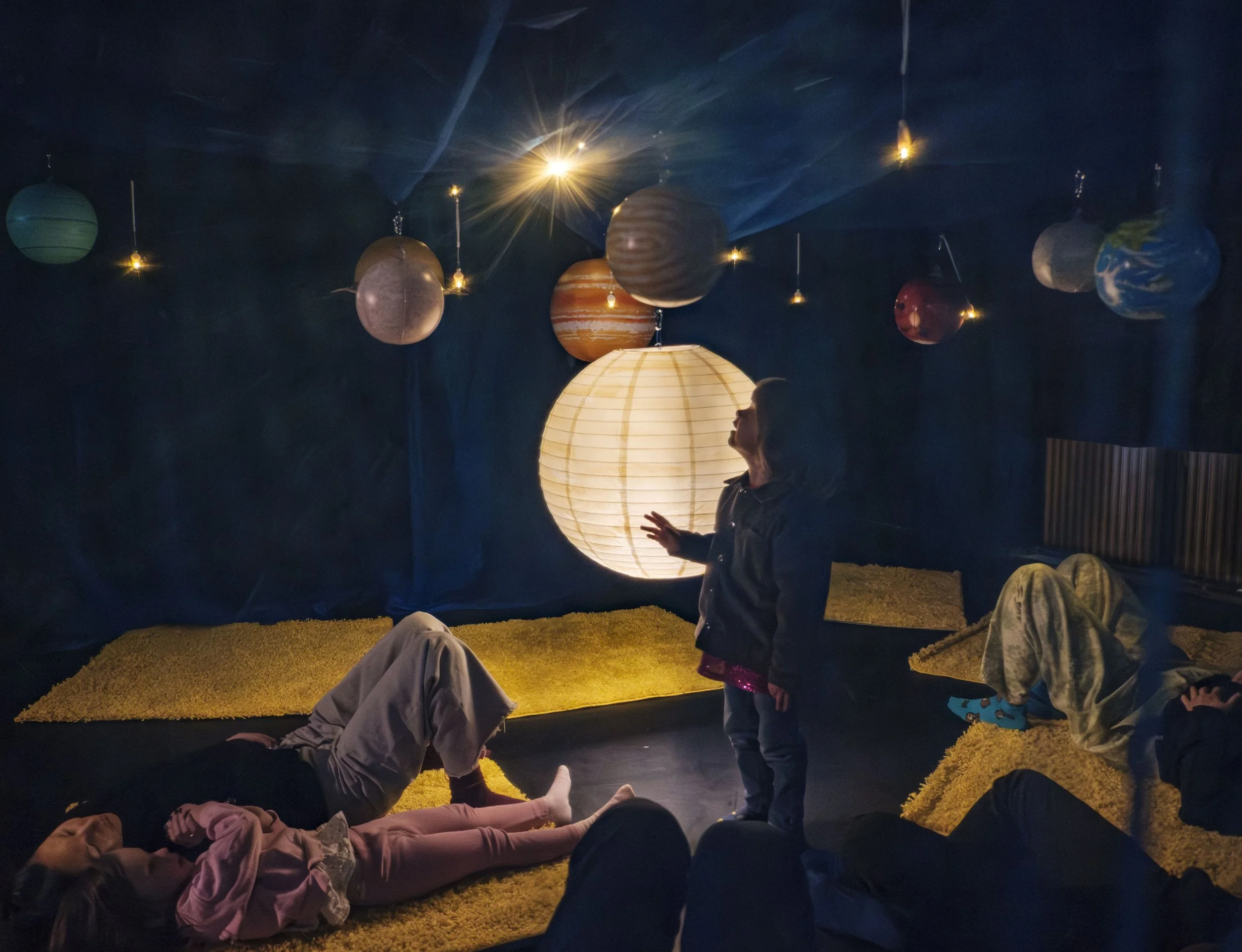 Mittels Installation, Tanz und Theater taucht ihr partizipativ in die Welt der Sterne und Planeten ein und lernt unser Sonnensystem besser kennen!